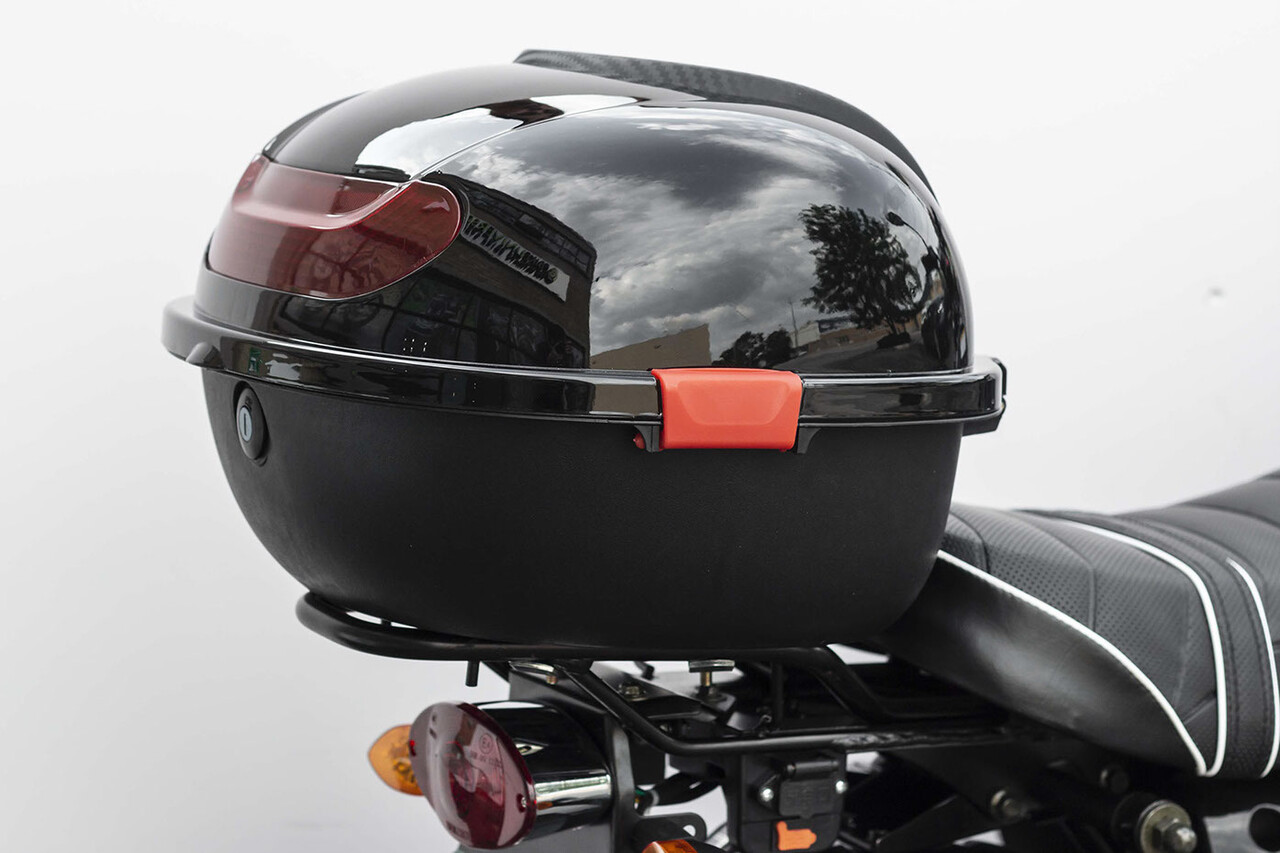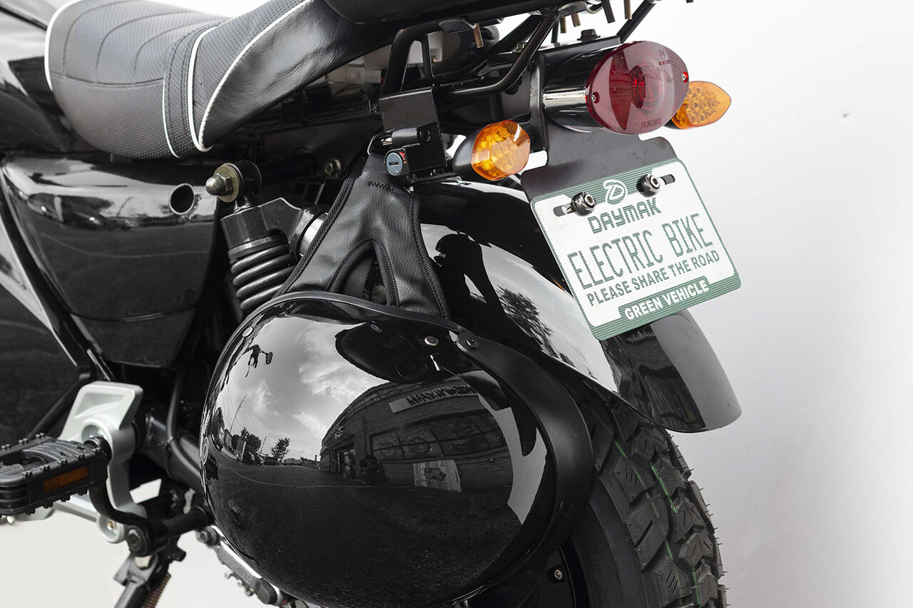 La moto eléctrica incluye un cierre para casco.
