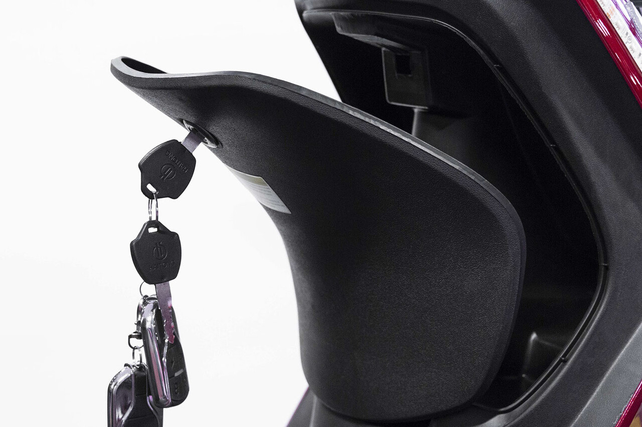 Una característica única del scooter son los paneles solares en la caja de carga trasera. Los paneles solares cargan el scooter cuando está estacionado para aprovechar la energía del sol como combustible eléctrico gratuito.