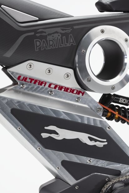 El Ultra Carbon tiene un potente motor eléctrico 3,000 vatios con una velocidad máxima superior a 80 km/h. El motor proporciona 200 Nm de par para una aceleración rápida. El motor está fabricado a medida por Moto Parilla.